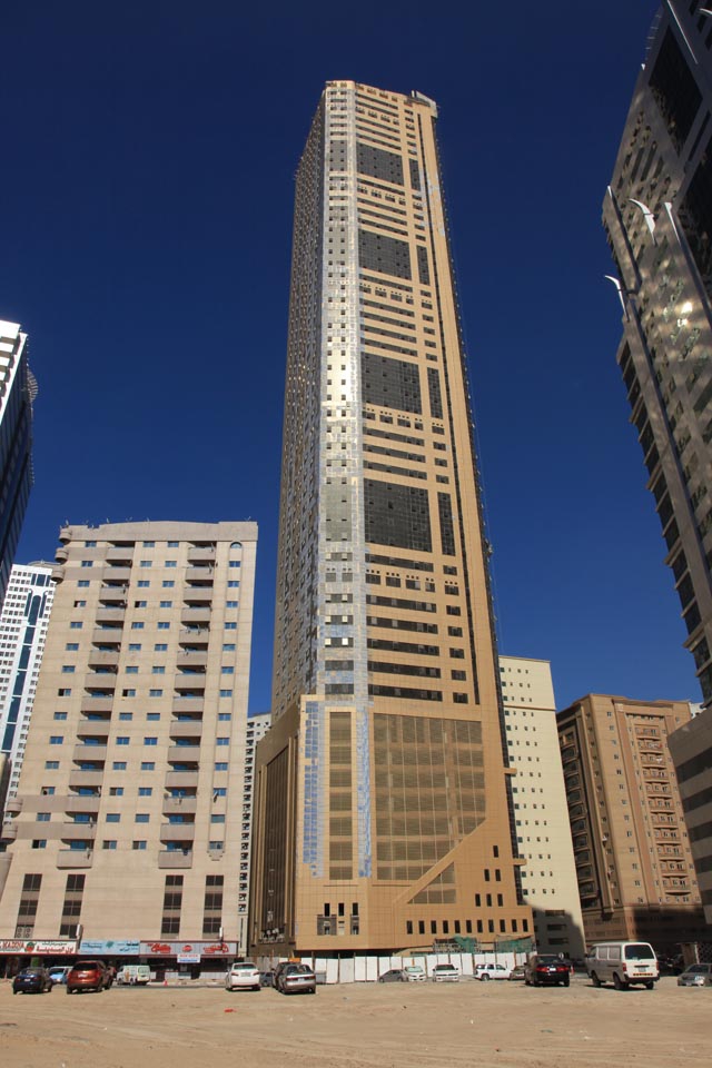 Proje detayı:Sharjah Al Nahda'da bulunan otel, 56 kat/224 metre yüksekliğe sahiptir.Projenin toplam alanı 46744 m2 dir. Birleşik arap emirliklerindeki en yüksek binalardan biridir. modernite ve prograsyonun bir dönüm noktasıdır.Projede Cellubor kullanılmıştır.